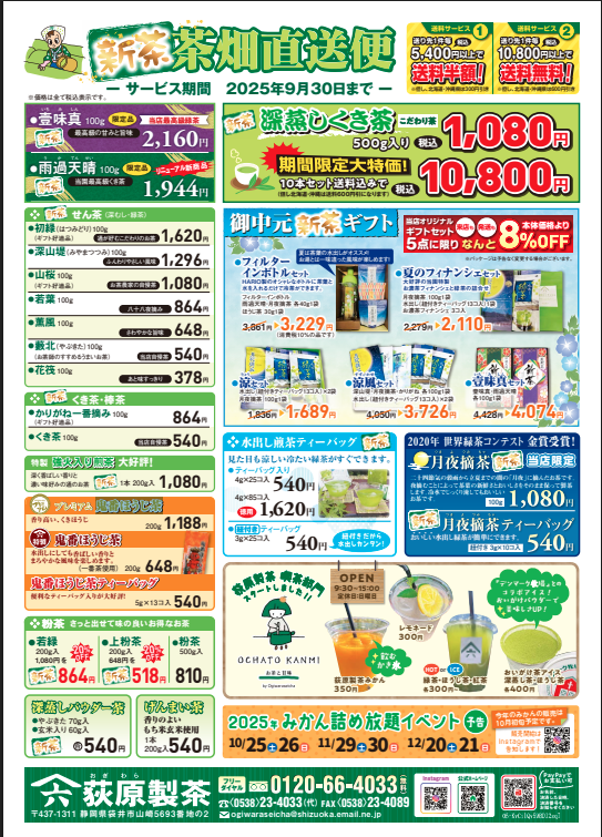 2024.9.25荻原製茶 10月からの秋チラシが出来上がりました!荻原製茶公式Xにて掲載しております。